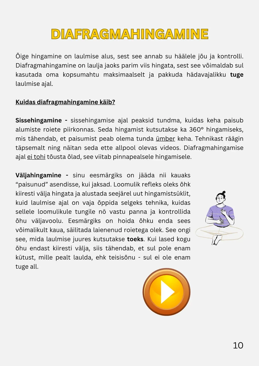 See kursus on eelkõige teoreetiline teejuht, mis aitab sul aru saada, kuidas laulmine tegelikult toimib. Kui mõistad neid põhialuseid, muutub kogu edasine õppimine lihtsamaks, teadlikumaks ja palju tulemuslikumaks.